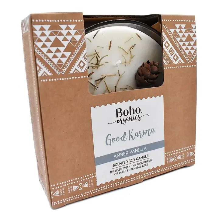 Amber Vanille geurkaars in glazen pot - met gedroogde bloemen en smudge Handgegoten, doordrenkt met geurige essentiële oliën en gemaakt van gifvrije natuurlijke sojawas 3 katoenen lonten.