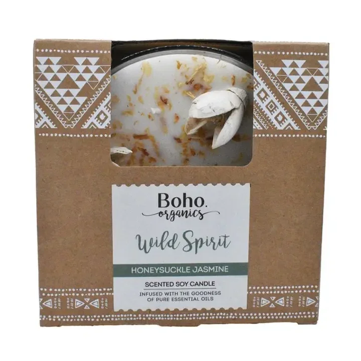 Kamille Jasmijn geurkaars in glazen pot - met gedroogde bloemen en smudge Handgegoten, doordrenkt met geurige etherische oliën en gemaakt van gifvrije natuurlijke sojawas 3 katoenen lonten.