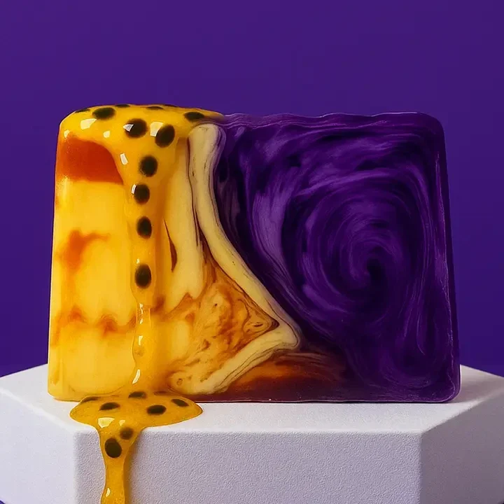 Passievrucht Zeep Plak – een handgemaakt stukje tropische luxe voor je huid en zintuigen. 🌿💛