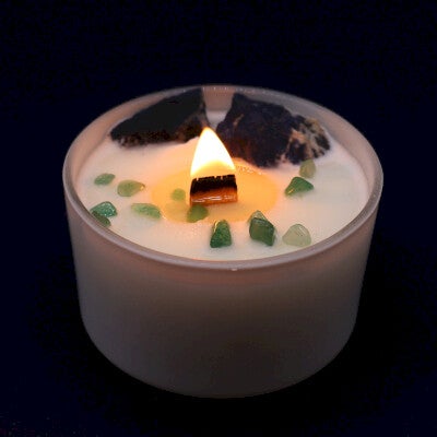 Gemaakt met echte edelstenen, volledig natuurlijke sojawas, speciaal gemengd parfum en magische houten lonten.