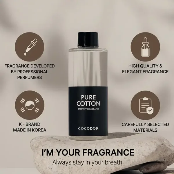 1x Navulling voor 200 ml diffusers. “Pure Cotton” elegante en verfijnde geur, ideaal voor thuis, kantoor en alle ontvangstruimtes.