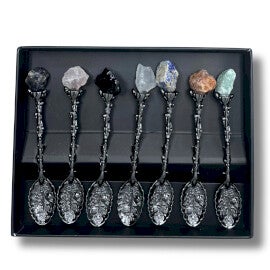 Donkerzilveren Edelsteen Kristallen Hekslepels Set van 7