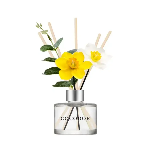 Deze elegante, hoogwaardige diffuser creëert een ontspannende, gebalanceerde sfeer, perfect voor elke ruimte. Compleet met vijf zwarte rietstokjes en twee delicate narcisbloemen, voegt het een verfijnde vleugje lente en zonneschijn toe aan woonkamers, slaapkamers, kantoren of spa-achtige ruimtes