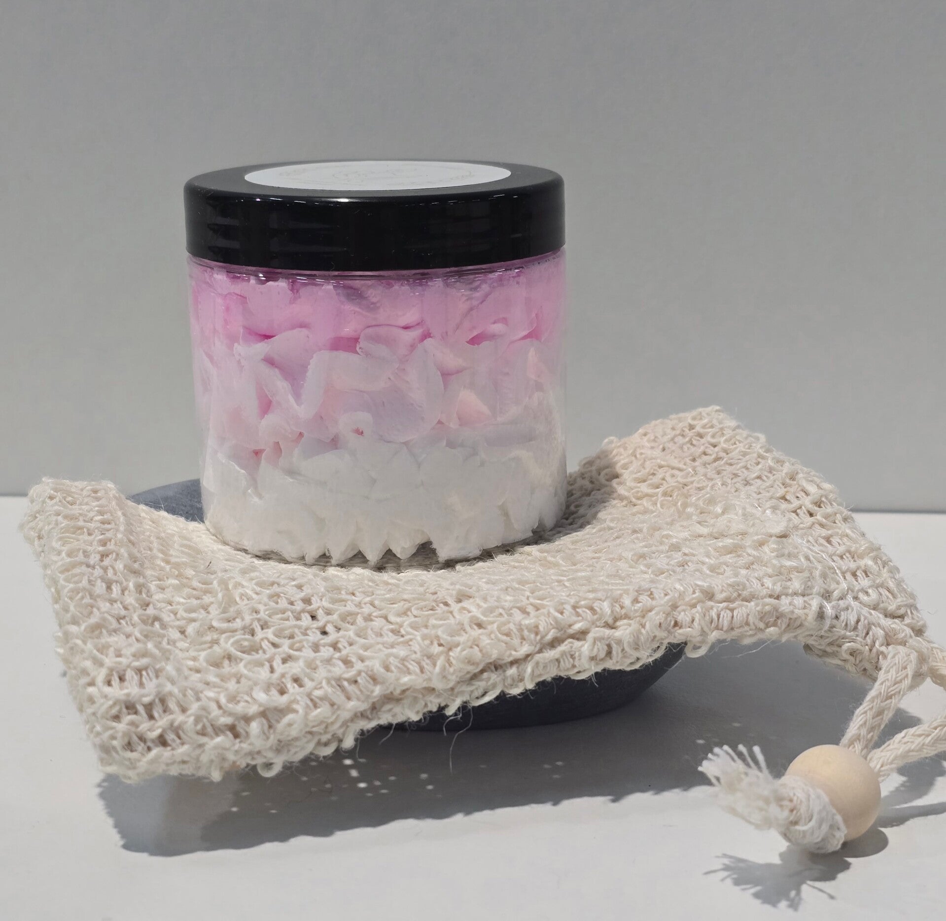 Voor een extra verwenmoment kun je onze opgeklopte zeep gebruiken met een douchepuff. Door zachtjes met de puff over de zeep te wrijven, krijg je nog meer schuim, zodat je kunt genieten van een luxe en ontspannende douche of bad.