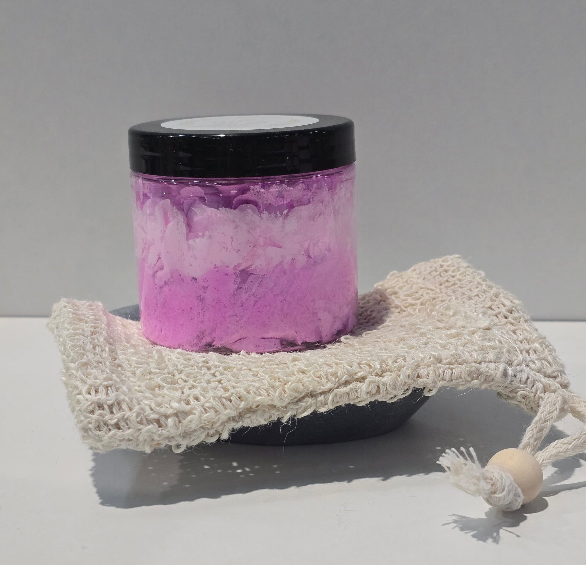 Voor een extra verwenmoment kun je onze opgeklopte zeep gebruiken met een douchepuff. Door zachtjes met de puff over de zeep te wrijven, krijg je nog meer schuim, zodat je kunt genieten van een luxe en ontspannende douche of bad.