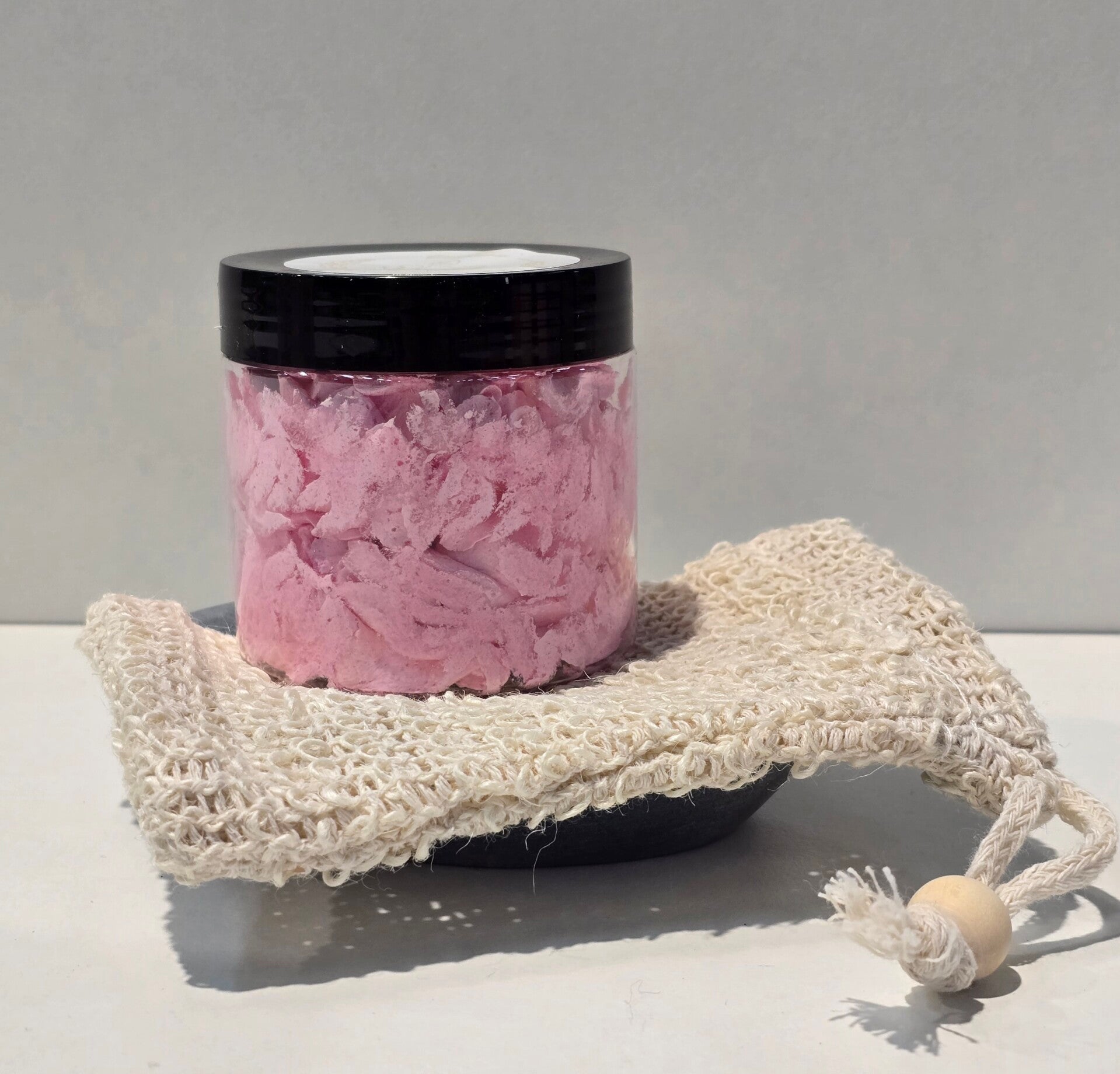 Voor een extra verwenmoment kun je onze opgeklopte zeep gebruiken met een douchepuff. Door zachtjes met de puff over de zeep te wrijven, krijg je nog meer schuim, zodat je kunt genieten van een luxe en ontspannende douche of bad.